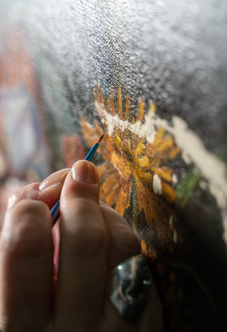 Je m'appelle Rosalinda D'Ambrosio, je suis italienne et installée à Paris depuis 2003. J'ai été formée aux Beaux-Arts en Italie, où j’ai découvert les techniques traditionnelles de la peinture et mes premières notions de restauration.