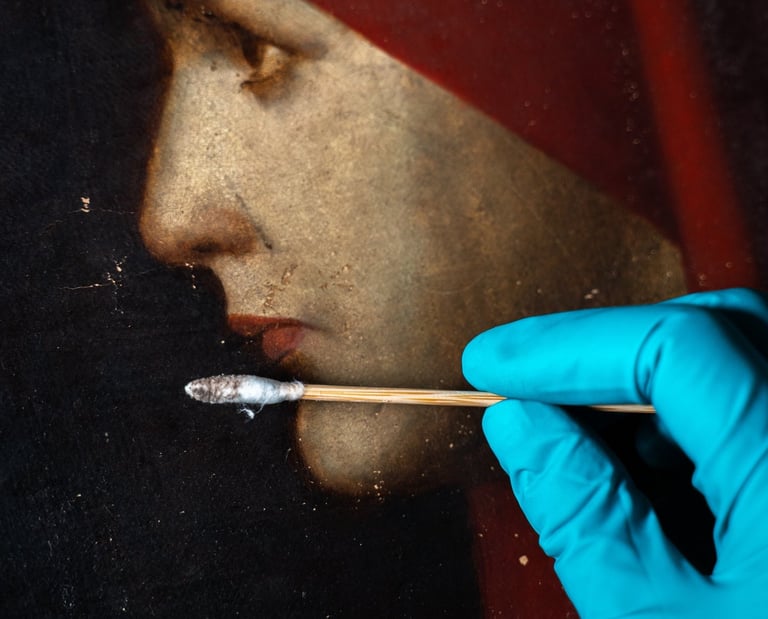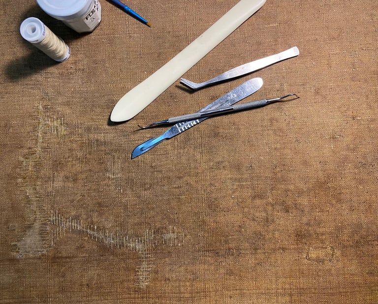 En amont de toute intervention, je réalise un examen préalable afin d’évaluer l’état de l’œuvre et de déterminer les traitements nécessaires. Cet examen donne lieu à un rapport détaillé accompagné d'un devis précis. Cette étape est entièrement gratuite. Pour les formats de grande dimensions, ce constat peut être effectuée directement sur place.