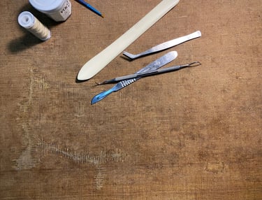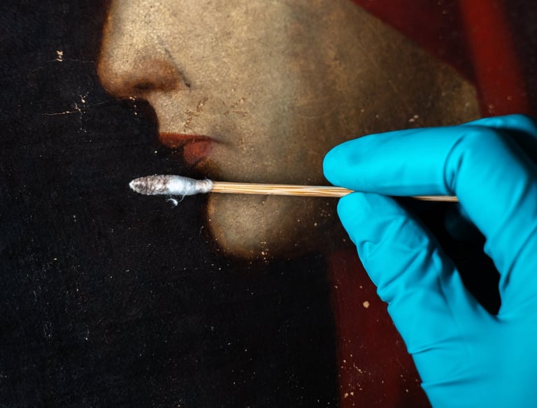 En amont de toute intervention, je réalise un examen préalable afin d’évaluer l’état de l’œuvre et de déterminer les traitements nécessaires. Cet examen donne lieu à un rapport détaillé accompagné d'un devis précis. Cette étape est entièrement gratuite. Pour les formats de grande dimensions, ce constat peut être effectuée directement sur place.